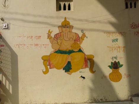 Images of the Hindu diety Ganesha are painted on the exterior of homes when someone in the family marries.