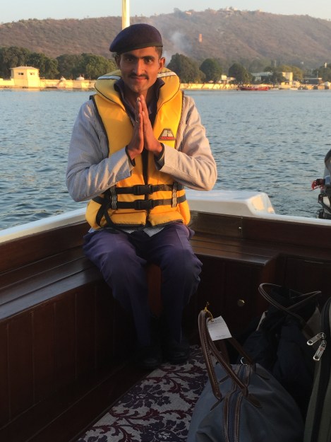 Namaste. One of the boat operators who shuttles guests between the shoreline and the hotel.