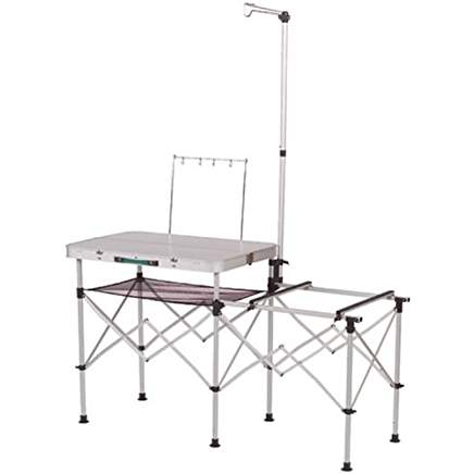 5. Coleman “kitchen.” I picked this up at the Coleman factory store tent sale, and I’m glad I did. It’s a folding table with legs meant to support your camp stove, a hanging lantern and cooking utensils, and it provides a work or prep surface next to the stove. I love this thing. It allows you to keep your stove off the picnic table, where people are busy doing other things like playing Gin Rummy or Bananagrams.