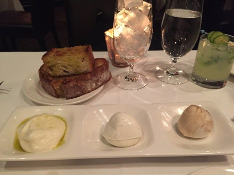 A mozzarella and burrata sampling at Osteria Mozza