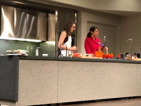 The museum also presents monthly cooking demonstrations on a stage in a different part of the museum. The day I visited, I attended a cooking demonstration to celebrate what would have been Julia Child’s 106th birthday. A chef from the store Sur la Table prepared a lavender scented creme brûlée and a bouillabaisse, similar to what she imagined Julia Child would have made while she lived in Provence in southern France. A museum food historian provided commentary and some background on Julia Child’s life while the dishes were being prepared.