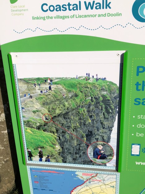 Some visitors engage in highly risky behavior at the cliffs, such as approaching the edge of the cliffs to take selfies, etc. This sign in the photograph below warns visitors about this.