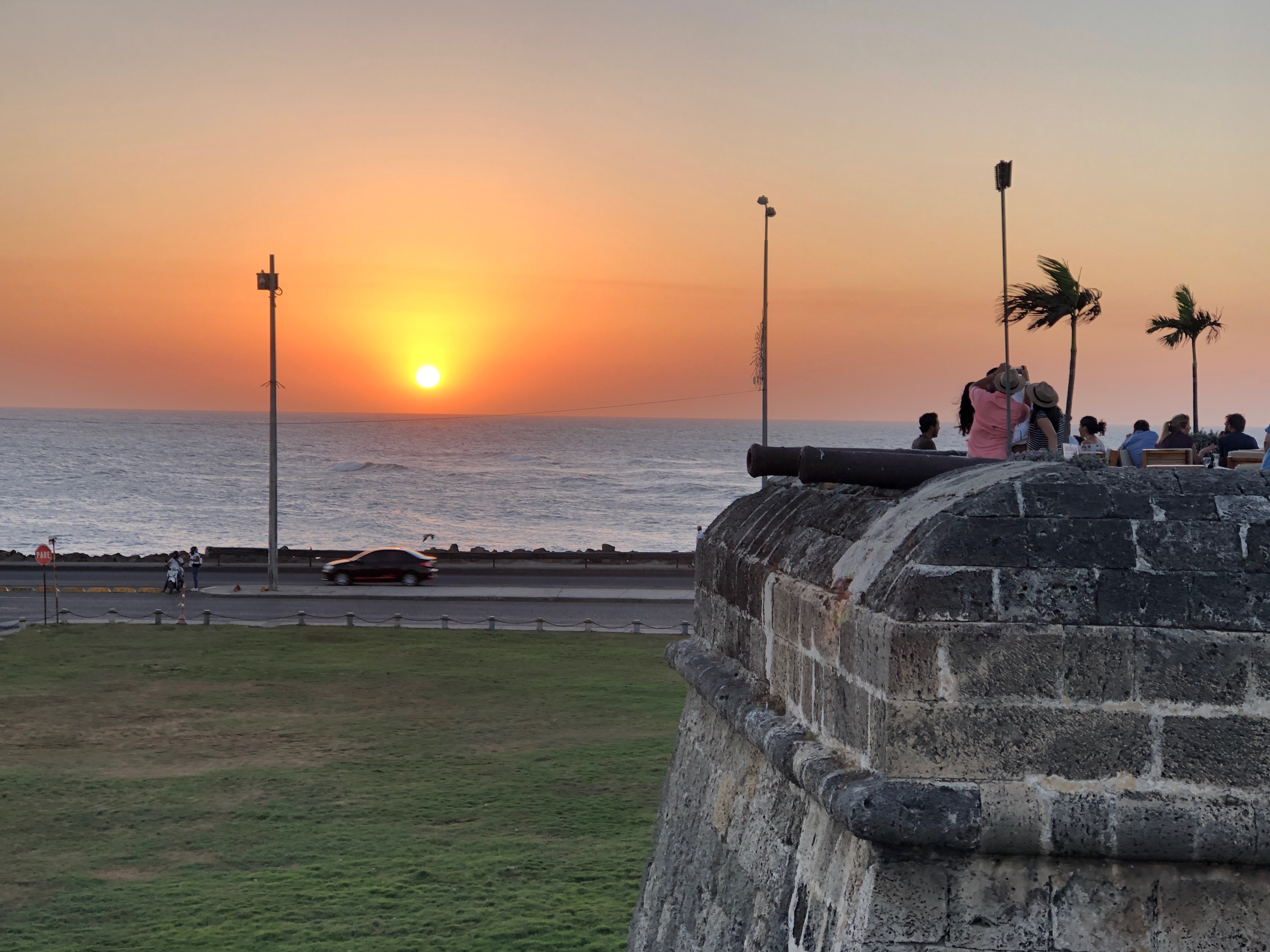 img_4030 Published January 20, 2019 at 4032 × 3024 in Nine days in Colombia: first stop — Cartagena ← Previous Next → Cafe del Mar is on top of the walls. The people in the photo are enjoying the view from the Cafe.