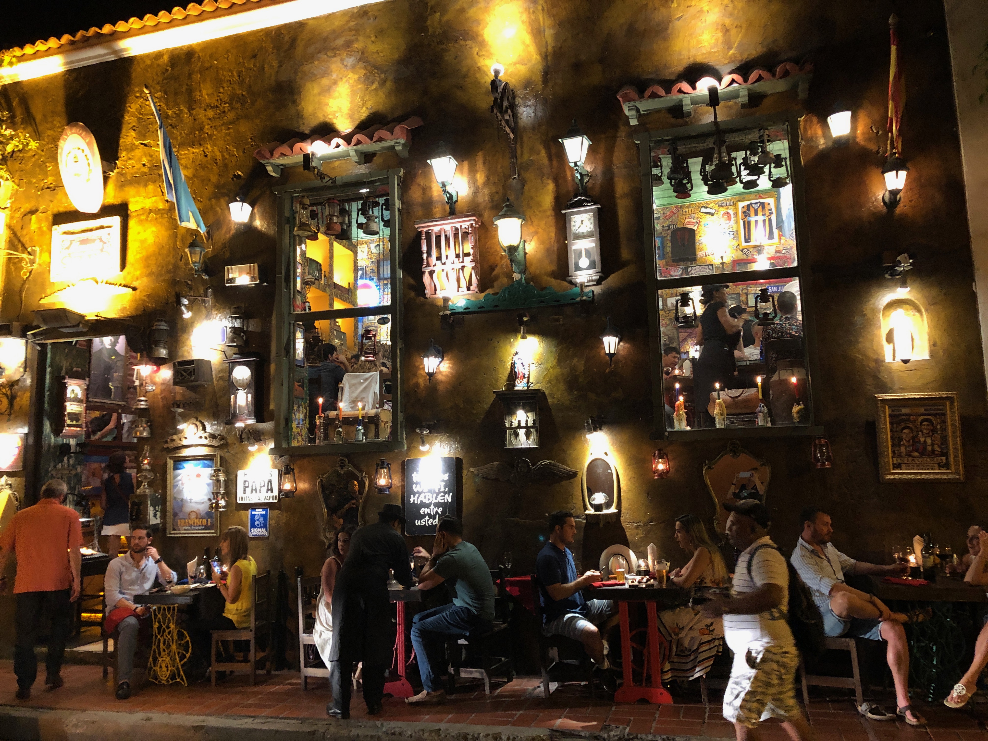 img_4109 Published January 23, 2019 at 4032 × 3024 in Nine days in Colombia: first stop — Cartagena ← Previous Next → At Marzola parrilla argentina, the steak is served on cutting boards and the walls are covered with framed football jerseys, and photos of Pope Francis and other Argentinian-born famous persons. This is the exterior.
