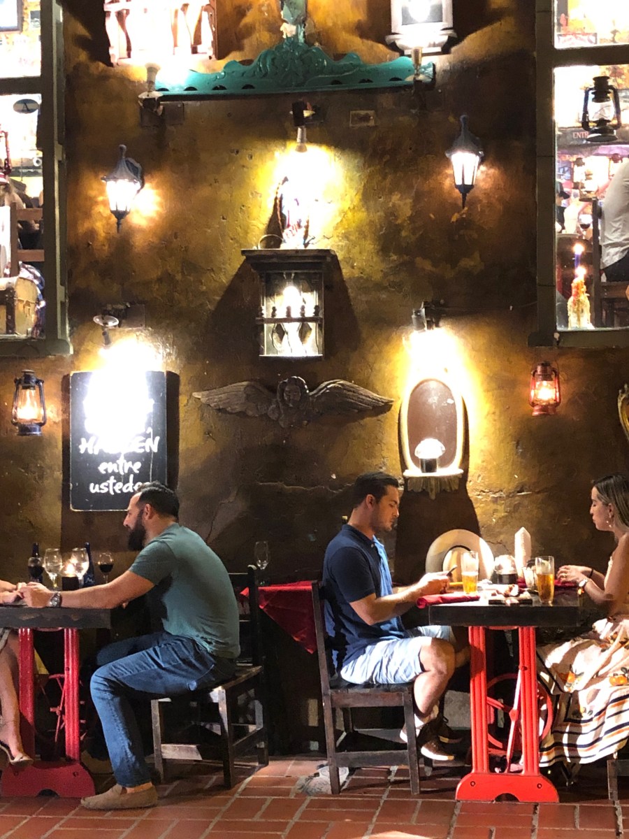 img_4110 Published January 20, 2019 at 3024 × 4032 in Nine days in Colombia: first stop — Cartagena ← Previous Next → There are many restaurants and types of cuisine to choose from in Cartagena. This is the exterior of a busy meat-heavy Argentinian restaurant. The lights on the exterior are both incandescent and candlelight.