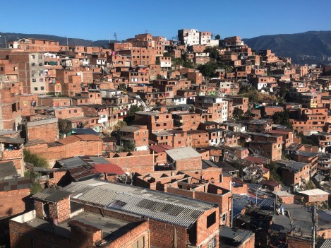 A view of the barrios from a cable car that provides transportation to and from the mountainside communities in Medellin.