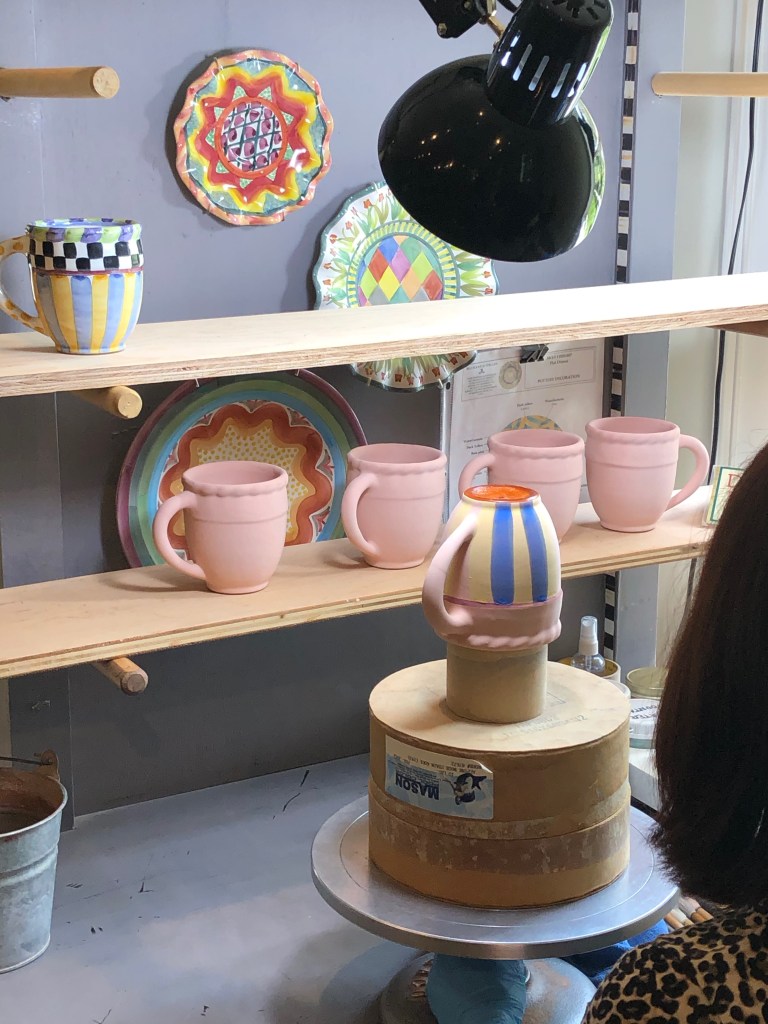 A display of hand-painted teapots and cups at the MacKenzie-Childs outlet store in Aurora.