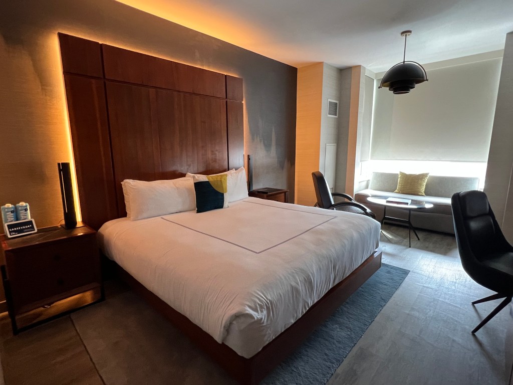 We had booked a room at the Gansevoort Meatpacking Hotel, which is only a few blocks from our son’s apartment in Chelsea. Our son pronounced it “the trendiest neighborhood in the city,” and the room price reflected that. When we checked in, fate must have smiled on us because the desk clerk announced that she was able to upgrade us to a larger room on a higher floor. Why this happened escaped us, but we were very pleasantly surprised when we opened the window shade in our eleventh floor room.