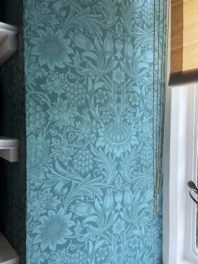The room below, called the Green Room, features hangings in textile designs named after streams that flow into the River Thames, such as “Kennet.”