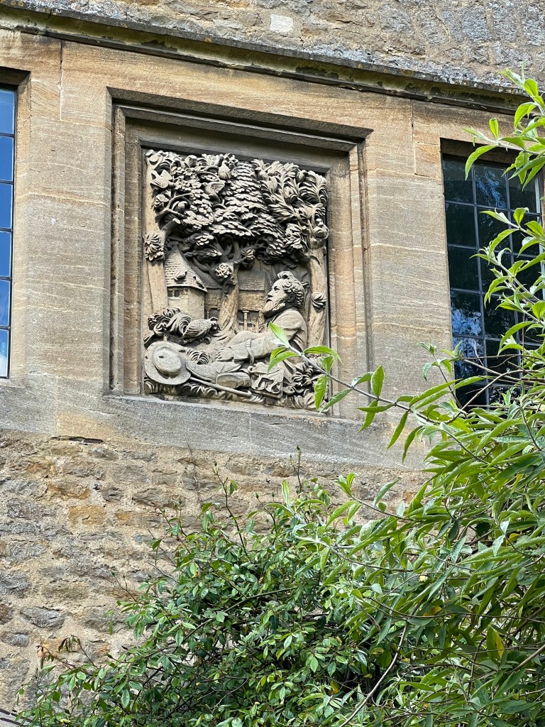 As we were approaching Kelmscott Manor, I noticed a carving of William Morris on the exterior of a building we passed down the lane from the manor house.