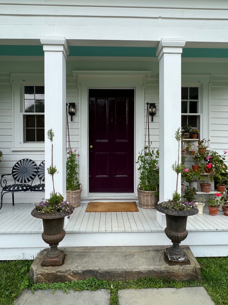 This is the rear entrance to the kitchen, which is in the oldest portion of the house. Note the blue ceiling paint on the porch, known as “haint blue,” which is traditionally a practice in the southern United States to keep the spirits or ghosts away.