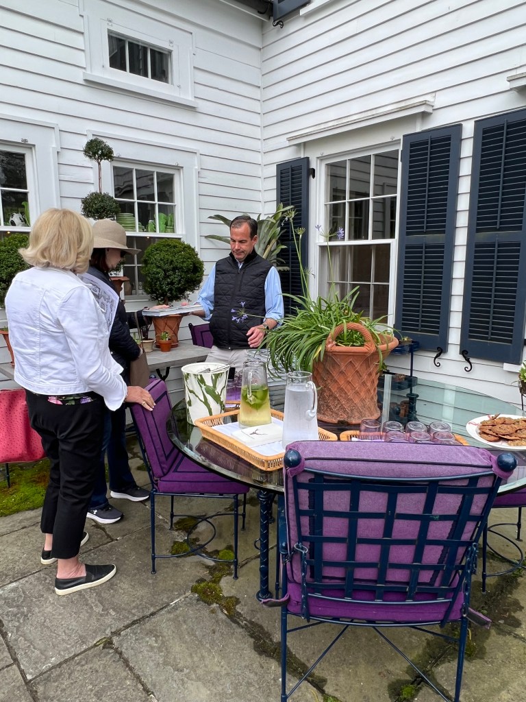 Christopher is especially known for his lamps and tableware. In 2021, he published a beautiful coffee table book through Rizzoli that outlines his gardening, decorating and cooking choices at the farm, according to season. He is close friends with Martha Stewart, who wrote the foreword to the book. Christopher was on site and ready to talk to the visitors to his home. His ceramics studio is located on the property, in a 1903 building that previously served as the Town’s Grange.