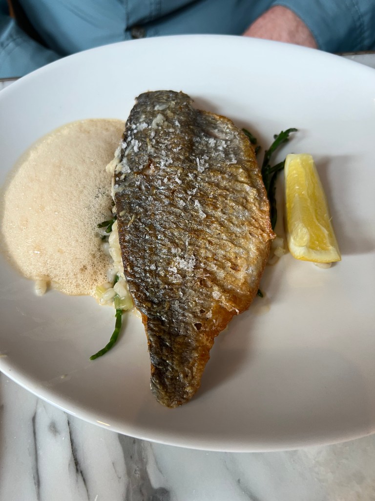 Another evening we had a wonderful sidewalk meal at a cute French bistro, Brasserie de Luwte. I had one of my favorite dishes, lemon sole. Below is a photo of the interior. Note the bucket of Aperol – the bistro promotes what it calls Aperol Spritz Tower. I’ve included a photo of two men who indulged me as I took their photo at one of the sidewalk tables with a tower.