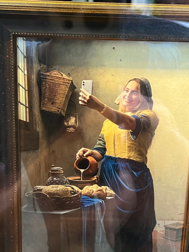 We came upon a storefront where an enterprising photographer offers clients the opportunity to dress up and be photographed as a character from one of Vermeer’s paintings, like Girl with Pearl Earring and The Milkmaid.