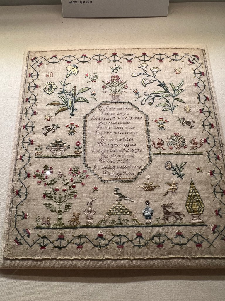 There are yet more textiles on display in this building, including American samplers and even a quilt depicting America’s Founding Fathers.
