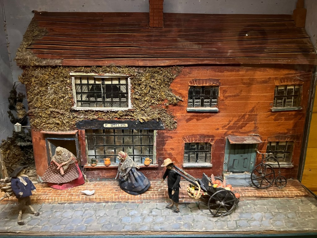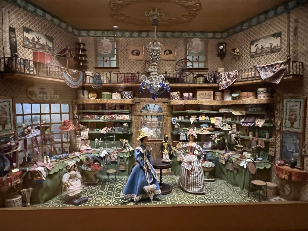 In an adjoining room the visitor finds a collection of glass-encased dioramas of miniature scenes created by Helen Bruce (b. 1880), upon commission by Mrs. Webb.