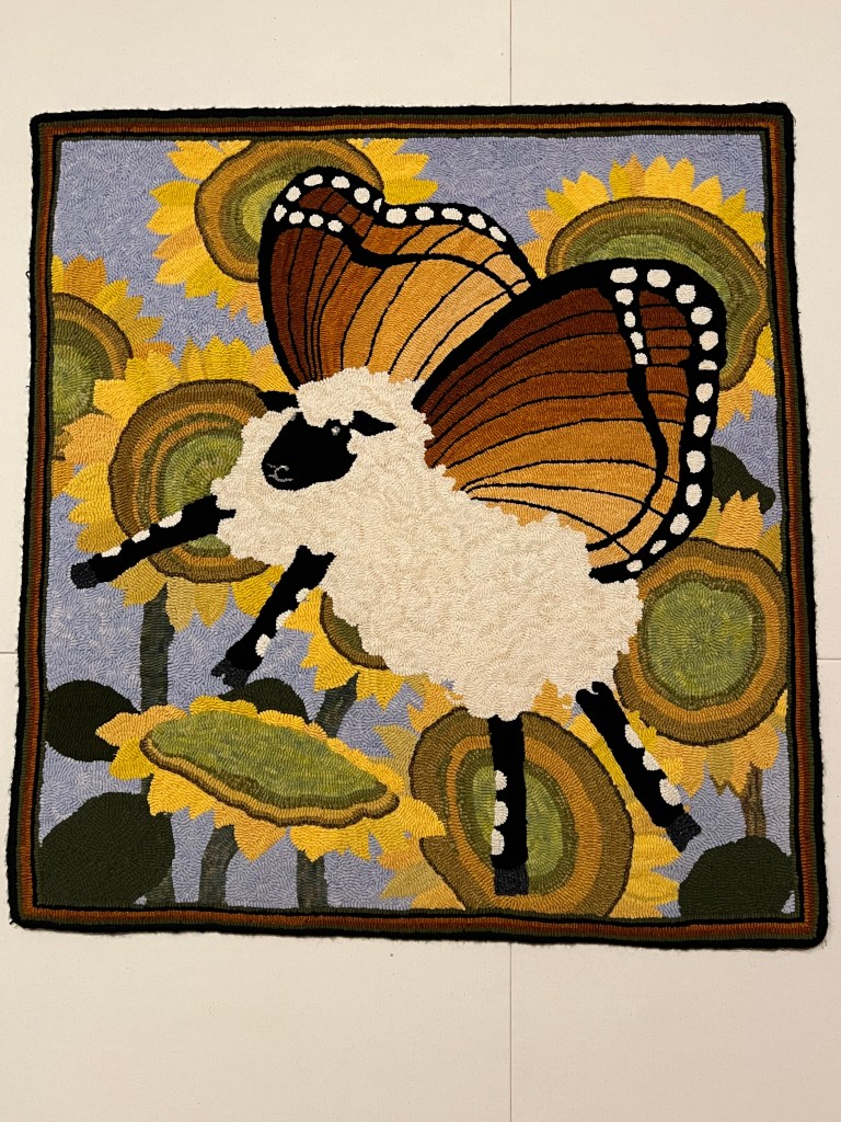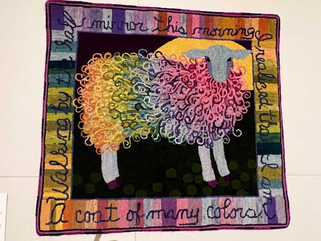 In a room adjacent to the quilts is a selection of American hooked rugs. The fanciful rugs shown below were designed and hooked in wool by the late Vermont artist Patty Yoder.
