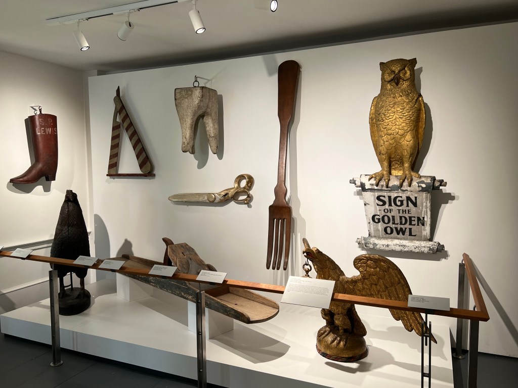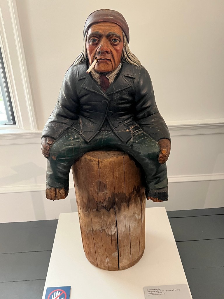 Heading into the 1783 Stagecoach Inn, the visitor sees some of the best folk art in the museum’s collection. The collection includes cigar store figures, weathervanes, trade signs and ship carvings. The museum literature points out that Mrs. Webb was one of the first collectors of American folk art, and she bought her first folk art sculpture in 1908, a “cigar store figure,” when she was just 19 years old.