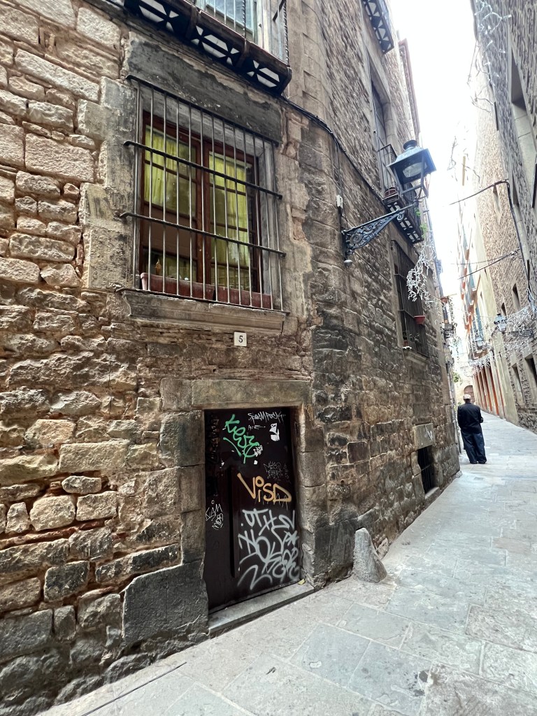 Continuing on, we proceeded through the Jewish quarter and following a walking map, found the site of what is believed to be the oldest synagogue in Barcelona. There was virtually no signage, and no way to enter.