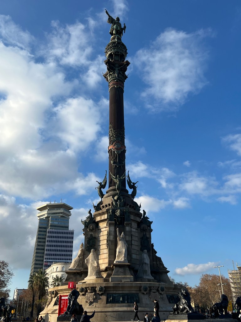 We continued walking down towards the waterfront and the old port, where there’s huge (197 feet tall) statue of Christopher Columbus, erected in 1888. Although Columbus was born in Italy, he returned to Spain after his first voyage to America to report to Queen Isabella and King Ferdinand V in Barcelona.